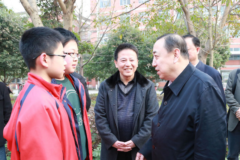 在德陽外國語學(xué)校,楊志明一行先后參觀了學(xué)校警校共育辦公室、消防體驗(yàn)館和圖書館,對優(yōu)美的校園環(huán)境、完備的教育教學(xué)設(shè)施、良好的師生風(fēng)貌給予充分肯定。同學(xué)們的朝氣蓬勃、謙恭禮讓、尊老愛幼的行為讓調(diào)研組很是欣慰??吹酵瑢W(xué)們從旁邊經(jīng)過,楊志明關(guān)切地詢問起他們平日的學(xué)習(xí)生活情況,當(dāng)聽到同學(xué)們說在德外學(xué)習(xí)很幸福時(shí),他非常高興,他說,教育的意義不僅在于提高人的科學(xué)文化水平,還在于提升人的幸福感,讓整個(gè)社會(huì)充滿正能量,德外培養(yǎng)的學(xué)生不僅成績好,綜合素質(zhì)也非常高,是素質(zhì)教育的典范。