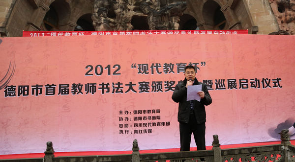 德陽(yáng)市千山街三段87號(hào)為提升全市教師和學(xué)生的書法鑒賞能力和實(shí)踐經(jīng)驗(yàn),豐富師生的精神文化生活,提高師生的審美素質(zhì)和藝術(shù)修養(yǎng),12月19日,由市教育局主辦、市書畫院協(xié)辦的“現(xiàn)代教育杯”德陽(yáng)市首屆教師書法大賽頒獎(jiǎng)典禮暨巡展啟動(dòng)儀式在德陽(yáng)石刻公園隆重舉行,省人大農(nóng)工委副主任、德陽(yáng)市原人大常委會(huì)黨組書記、德陽(yáng)市書畫院院長(zhǎng)張法祥,德陽(yáng)市教育局副局長(zhǎng)余凱儒,中國(guó)書法家協(xié)會(huì)理事、四川省政協(xié)書畫院副院長(zhǎng)兼秘書長(zhǎng)洪厚甜,德陽(yáng)市教育局副調(diào)研員盧彥平等出席了本次典禮。