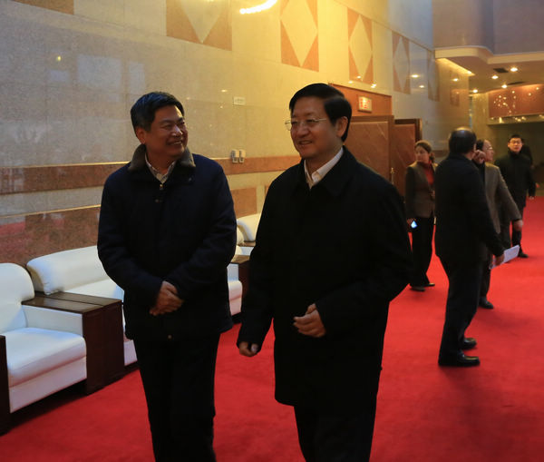 會議期間,省委常委、省紀(jì)委書記王懷臣與省政協(xié)常委蘇華親切交談