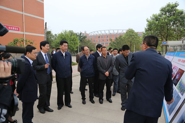 李向志率隊視察了中江職中的禁毒展覽室和各類依法治校展板,聽取了蘇華關(guān)于四川現(xiàn)代教育集團(tuán)和中江職中近年來依法治校工作的情況介紹。李向志對四川現(xiàn)代教育集團(tuán)和中江職中近年來在依法治校方面所取得的成績給予了高度評價。李向志指出,學(xué)校將普法教育、依法治校與日常管理相結(jié)合,大力開展品德教育、禁毒教育和平安校園建設(shè),增強(qiáng)了師生的法治意識,成為民辦職教的一個先進(jìn)典型,值得肯定。李向志在視察中說:“今天我們進(jìn)縣、進(jìn)村現(xiàn)在又進(jìn)校,中江職中是一所民辦公助的新體制學(xué)校,作為一所中職學(xué)校,學(xué)校結(jié)合立德樹人的育人宗旨,在包括依法治校、踐行社會主義核心價值體系等方面做了大量的工作。學(xué)校作為全國民辦職業(yè)學(xué)校改革試點(diǎn)的一個先進(jìn)單位,實(shí)現(xiàn)零吸毒、零犯罪等多個目標(biāo),校園治安秩序良好,在禁毒方面也收到了良好的效果,受到了公安部的表彰?!?