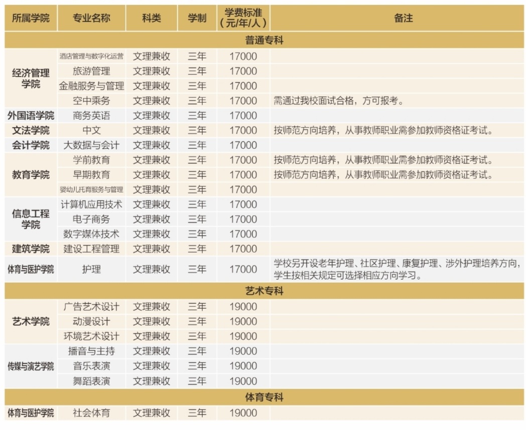 備注:學(xué)校招生專業(yè)、招生計劃數(shù)、收費(fèi)標(biāo)準(zhǔn)均以相關(guān)省份招生主管部門最終公布為準(zhǔn)。